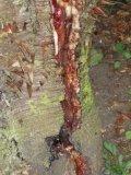 De scheur zou te maken kunnen hebben met een beschadiging(zwarte plek)in combinatie met de vermoedelijke zeer goede groei dit jaar.