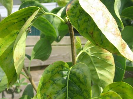 Enig idee wat er met de bladeren van deze sring aan de hand is? De meeste bladeren zien er nog goed uit, maar sommige zien er zo uit als op de foto.