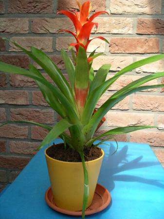 Deze Guzmania bloeit maar 1 keer. Eventuele zijscheuten, die onstaan tijdens en na de bloei, kunnen na een paar jaar weer bloeien.