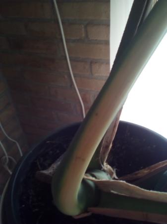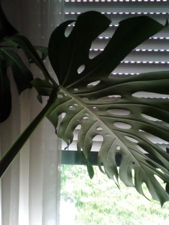 Ik heb al 35 jaar een gatenplant, heel klein begonnen uit een bakje met diverse plantjes. Al verschillende malen zijn de bovenstukken gemarcotteerd en bij deze plant is dat ongeveer 6 maanden gelden en er zijn al 3 nieuwe bladen gekomen. Nu is de aanzet van een van de bladeren geel aan het worden en ook de luchtwortel groeit niet verder.