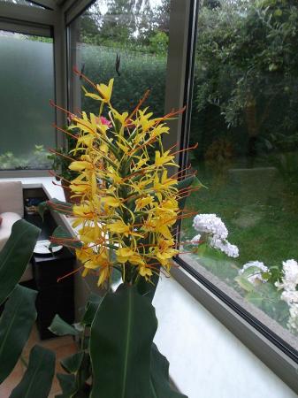 Mijn Hedychium/gember te logeren gegeven aan iemand met een serre, stond bij mij al 3 jaar te verpieteren.