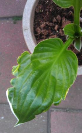 is dit een speciale hosta? Ik weet er de naam niet van. Maar net als vorig jaar heeft het blad scheuren . Vreemd!