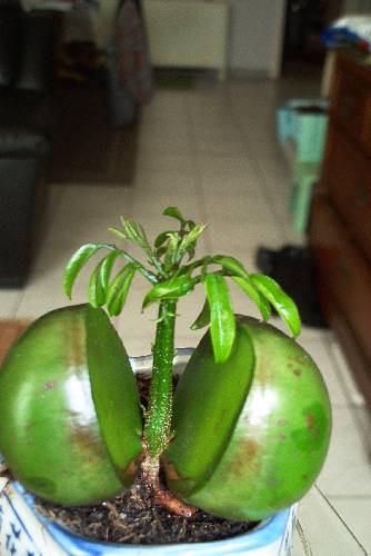 Een paar dagen geleden was er dezelfde vraag met een mooie foto erbij. Maar men had hem verteld dat het een Lucky bean was. Ik heb dit gewas ook nooit eerder gezien, maar de naam ingetypt in Google en daar verscheidene onderwerpen gevonden, waar die vorige van dit forum ook genoemd en getoond wordt met een prachtig foto. Je moet daar maar eens speuren. Dat Google heeft voor mij al wonderen gedaan. Frans.