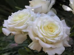 Het schijnt een theehybride te zijn, met mooie witte bloemen, die een geel hart hebben.