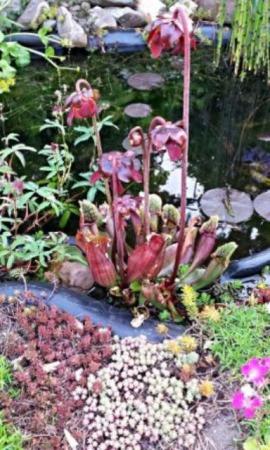 Ben zo trots op mijn vleesetende plant ( sarracennia) hij staat al 3 jaar in de moeras rand bij de vijver jaar rond en vorig jaar had ik 3 bloemen waarvan er 2 snel weg waren geknipt door een of ander insect, dit jaar heb ik 7 bloemen vind het zo mooi dat ik het even met jullie wil delen als foto plaatsen me lukt ;)