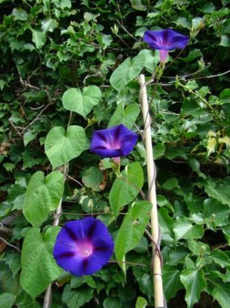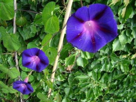 Ik heb een poosje geleden twee morning glory zaadjes (ipomea purpurea) gezaaid. Tot nu toe doen ze het goed in kleine potjes voor de vensterbank, maar ik denk dat ze komende week wel uit die potjes zijn gegroeid.