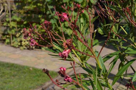 Deze zomer is een prachtig seizoen geweest voor m'n oleanders. Zelden zulke volle trossen gehad en dat dankzij het warme weer en........ze staan op een schotel waar altijd een laagje water in staat. Zo te zien staat deze plant te droog.