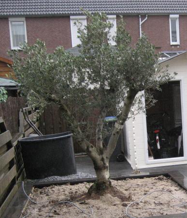 Deze vraag stelt natuurlijk iedereen na deze strenge winter met een olijfboom in de volle grond. Maar ik maak me toch een beetje zorgen over mijn boom. De hoofdstam is ongeveer 50cm in omtrek en de hoogte is ongeveer 1m80cm. In de winter heb ik de hoofdstam ingepakt met dekens. De hele winter heeft de boom gewoon zijn bladeren gehouden. Wel verkleurde de bladeren met de tijd van groen naar geel. Toen het begin dit jaar weer warmer werd is de boom mee en mee al zijn bladeren verloren. De stam en de hoofdscheuten zijn onder de stam nog helemaal groen en sappig maar de takjes waar de bladeren aan zaten zijn helemaal verdord.