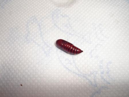 Deze larve/pop (2 cm lengte) werd door ons katje deze ochtend uit de border opgegraven. Iemand een idee wat dit wordt ?
