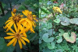 Ligulariainfo-icon dentata (veelal Ligularia clivorum genoemd), wordt op voedzame en voldoende vochtige grond tot 125 cm hoog.