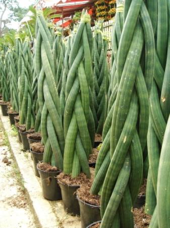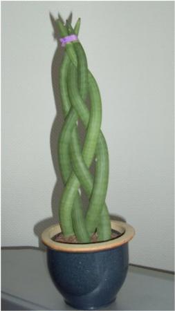 Aanvulling: ga er maar van uit, dat dit een tijdelijk grapje is. Als de plant gaat groeien en grondscheuten gaat maken, gaat de vlechtvorm verloren. Behandel deze Sansevieria als een vetplant: veel licht en weinig water.