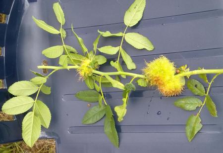 Dit zijn rozengallen, ook wel mosgallen genoemd. gemaakt door een galwesp. Niet van invloed op de groei van de roos. Mogelijk is voedingsgebrek de oorzaak.
