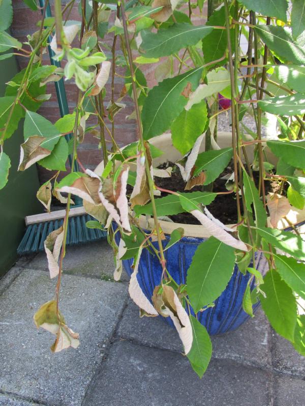 Bruine blaadjes zijn waarschijnlijk gevolg van zonnebrand en of droogte.