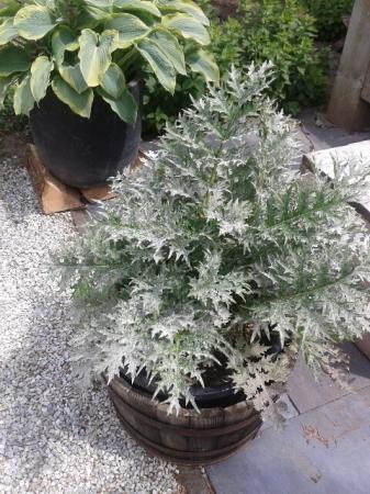 Misschien hoort het zo? Onlangs ook een geheel witte plant gekocht, een Stachys Bello Grigio. Het is een harde groeier en ik weet nog niet wat ik van hem vind. Hij is wat nadrukkelijk aanwezig. :)