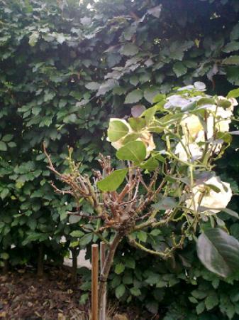 De hele winter heeft de Stamroos in de noppenfolie gezeten en in het voorjaar(maart/april) heb ik de stamroos terug gesnoeid. Hij heeft rozenmest gekregen. Komt het vaker voor dat een stamroos een minder jaar heeft?