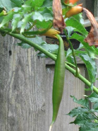radicans gehad in mijn stadstuintje en had hetzelfde probleem. Mijn zus had dezelfde plant gekocht en bij haar deed ie het wonderwel : honderden bloementrossen ieder jaar. De hare stond veel zonniger, de mijne kreeg slechts zon vanaf de middag. Ik heb nu vooraan het huis een nieuwe geplant die ook ochtendzon krijgt. Hij groeit wonderwel, maar nog geen bloemen gezien.Ik heb echter nog hoop; het was slechts een klein takje toen ik hem in oktober 2004 heb geplant.