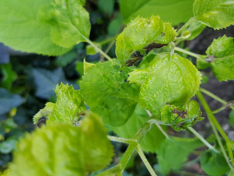 Mijn hortensia heeft misvormde blaadjes en groeit niet goed. Weet iemand wat dit kan zijn? Ik zie geen luis  en heb hier voor de zekerheid ook l tegen gespoten. Alle hulp is welkom! Al vast bedankt
