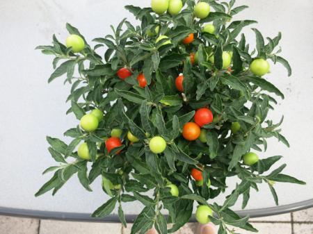 1. Solanum pseudocapsicum, oranjeappeltje 2. Verbena
