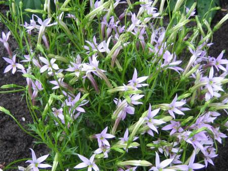 De blauwbloeiende plant is Isotoma axillaris, voorheen bekend onder de naam Laurentia