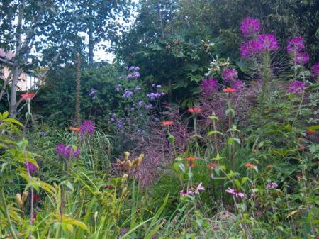 Ik vind deze combinatie van kleuren/planten erg mooi.Van de meesten op de foto weet ik de naam, maar weet iemand misschien wat de naam is van de purperkleurige plant o.a. rechtsboven op de foto?