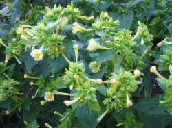 Jalapa, ofwel Nachtschone, wordt ook wel Vieruren-klokje genoemd. De bloemen openen aan het einde van de middag en houden het een aantal uren vol (vier?) Ze doen 't 't best op "arme" grond.