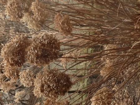 En ja, die dooie bloemen kunnen er nu uit. Hoe je hem verder snoeit is een kwestie van smaak. Als het inderdaad de Annabelle is kun je hem tot 20-30 cm van de grond terugsnoeien, gewoon met de heggenschaar vind ik het makkelijkst. Ook kun je je beperken tot het bovenste deel, zo'n een-derde. Volgens de tuinfabels blijven de bloemen dan wat kleiner en de takken dus beter staan. Wel geprobeerd niets van gemerkt. De iets kleinere bloemen worden gewoon gecompenseerd door meer bloemen en de hele boel ligt als altijd plat na een zomerse bui. Ruud