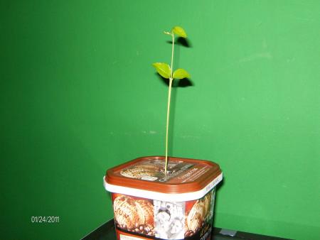 ik heb zeker een dikke 5 maande een pitje onbewust in deze pot gestoken wat u ziet op de afbeelding maar ik weet helaas niet van welke plant, de pot was bedoeld mijn slangebak vochtig te houden. nu vandaag zag ik ineens dat er een plant gegroeid is. in de pot zitten sponsjes dus geen potgrond. en hij zit in een open kast waar overdag de zon in schijnt. wat is dit voor plant ? en moet ik hem nu overplanten ?