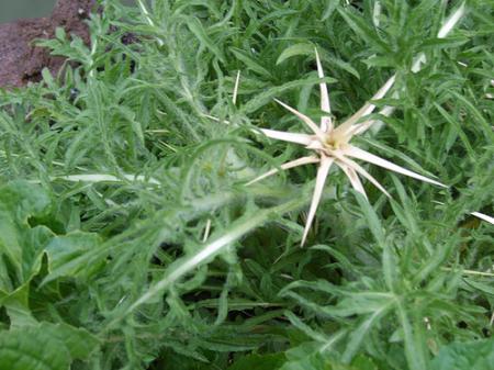 het lijkt wel wat op een speerdistel, maar die lichtbruine rozet bovenop. Is dat (de resten van) een bloem? Of heeft ie gebloeid? Of bloeit ie nu anders/ Of heb je dat er op gezet om iedereen een loer te draaien? Haha...