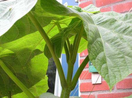blad harig, stengel verhout langzaam, is nu 140 cm hoog, bladmaat bijna 60 cm
