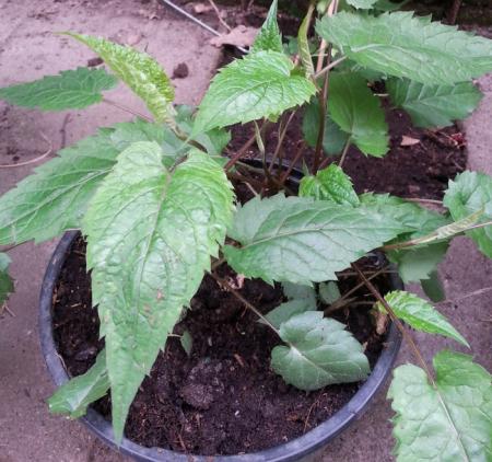 Het blad van Oclemena acuminata staat meer in kransen en is niet pijlvormig. Het zal iets anders zijn.