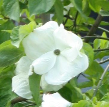 kousa? Deze heeft 4 tegenoverstaande (witte of rose-rood gekleurde) bracteeën (schutbladeren) met daarin de onopvallende eigenlijke bloeiwijze. Ik kan dat op de foto niet goed onderscheiden.