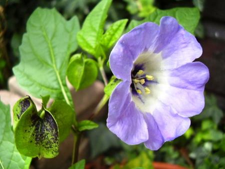 Nicandra physaloides, zegekruid. Een 1-jarige plant, die je zelf weer kunt uitzaaien.