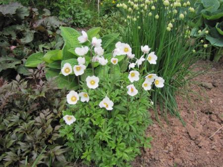Het zou eventueel Anemone 'Wild Swan' kunnen zijn, die wordt zo'n 60 cm hoog en zou - volgens de kweker - een doorbloeiende anemoon moeten zijn van begin juni tot oktober.