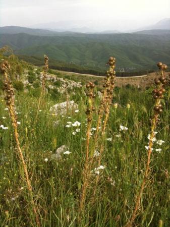 Onlangs stuitte ik in het mooie Griekenland op de volgende plant (zie afbeelding). Ik kwam deze tijdens een wandeling in de Vikos vallei tegen op ongeveer 1200 m. hoogte. De plant is een rechte stengel met daaraan een soort dunne bladeren en groen/bruine bessen (in clusters). Als je de bessen openmaakt komt er een soort van geel sap uit. De bloemen van deze plant zijn geel.