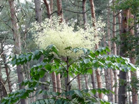 Lijkt meer op een gedumpte Araliainfo-icon elata. Fraxinusinfo-icon ornus heeft geen dubbel geveerd blad.
