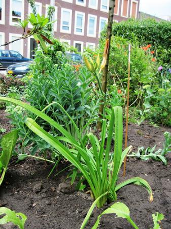 Maar ik weet niet hoe hij heet. Ik hoop dat de foto duidelijk genoeg is, de plant met de oranje bloemen en lange smalle bladeren.