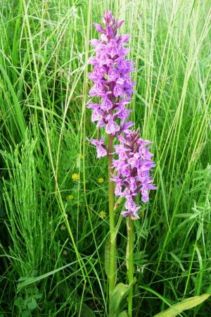 Ik meende te zien dat het blad gevlekt is. Dan is het een variëteit van de Rietorchis, de Gevlekte Rietorchis (Dactylorhiza