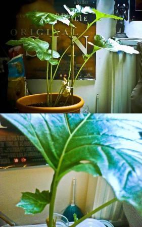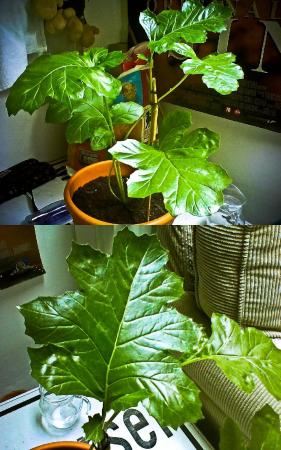 In huis wordt het blad veel groter en slapper, dan buiten. Dat verklaard de wat vreemde vorm.