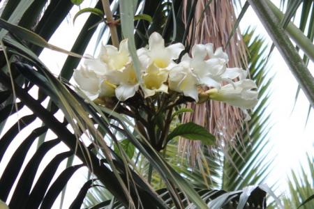 Gefotografeerd in Malaga in een palm. De bloemen doen denken aan een Bignoniaceae
