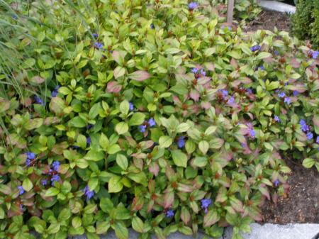 Zit vol knop dus nog meer blauw opkomst,blad verkleurt ook rood.Mooi zijn ze er staan er een paar dicht bijmekaar en groeit helemaal dicht.Groet minke