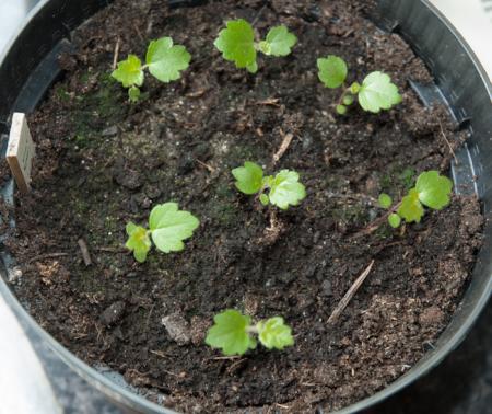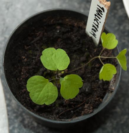 1 en 2 - Thalictrum aquilegifolium, twee foto's omdat nummer 2 binnen een week ontkiemde en heel snel een groot werd terwijl de rest nog amper boven de grond uit was. Maar nummer 2 heeft niet de hogere groei die 1 dan weer wel heeft al is dat niet goed te zien op foto.