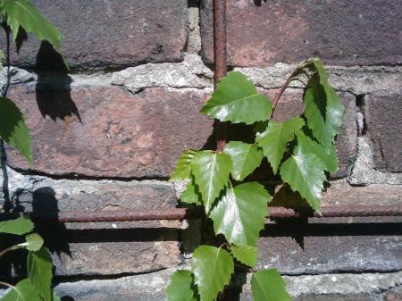 Wordt een boom, maar misschien wil je die daar niet. Tegen een muur kan dat problemen veroorzaken.
