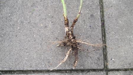 Zinloze actie! Een plant verplanten in volle bloei met zo'n kleine wortel, lukt niet. Tussen de stenen voelde de plant zich beter thuis.
