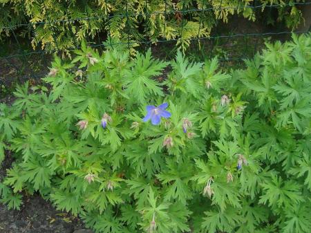 Er zijn ook geraniums met erg diep ingesneden blad! Lijkt me een Johnson Blue, maar dat is wel een wilde gok! Afwachten op de bloei. De knoppen moeten er al in zitten schat ik zo in.