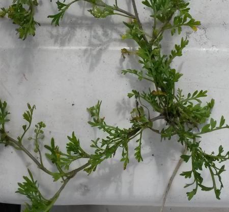 Dag mensen! Wie kent deze plant? Bijna onzichtbaar, het ligt direct en plat op de aarde, penwortel met vanuit het midden tot wel 10 uitlopers. Bij mij tot wel 20 cm, niet wortelend (tot op heden) behalve de penwortel. Erg klein en fijn geveerd blad, minieme bloemetjes die witte korrelvormige zaadjes laten vallen. Het kruipt onder het gras door en is nagenoeg onzichtbaar, maar verdrijft het gras. Gazon is twee maanden oud, ingezaaid op twintig jaar oude, gefreesde tuingrond, destijds aangevoerd, van onbekende oorsprong. Ik heb dit plantje nog nooit gezien, maar het verstopt zich wel heel knap. het breekt makkelijk af. Ik probeer het uitlopertje voor uitlopertje 'vrij te maken en dan langzaam de penwortel uit te trekken. Alvast bedankt voor de naam! Vriendelijke groet, Annemarie