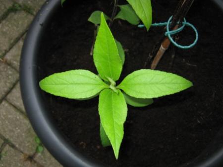 Hij staat in een pot als ik het goed heb, heb je een knol gepoot