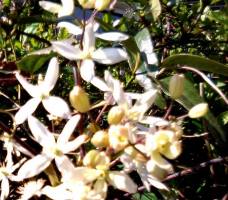 Wie kent de naam van deze plant? Hij groeit als een heg en ik denk, dat het een soort clematis is. Alvast hartelijk dank