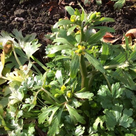 sceleratus, blaartrekkende boterbloem. Wel een vreemd tijdstip van bloei voor een 1-jarige plant.
