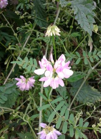 Coronilla varia of kroonkruid. Een flink woekerende plant. Alleen geschikt voor een wilde tuin.