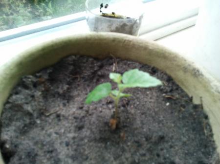 Uit de eerste appel kwam niets (of toch?) iets op. Een vreemd plantje,